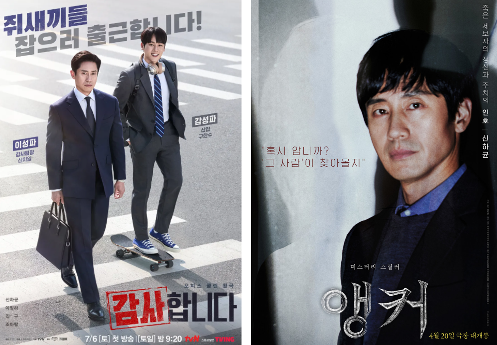 항상 강렬함과 그라비타로 특징지어지는 신하균은 감사와 개인적 성장의 주제를 탐구하는 드라마 '감사함니다'와 스릴러 '앵커'에서 음모와 위험의 그물에 걸린 결연한 뉴스 앵커를 연기합니다.